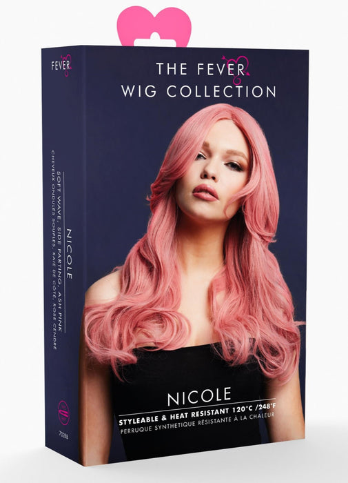 From the Fever Wig Collection comes this deluxe professional quality synthetic Nicole soft wave, side parting wig in ash pink measuring 66 cm.