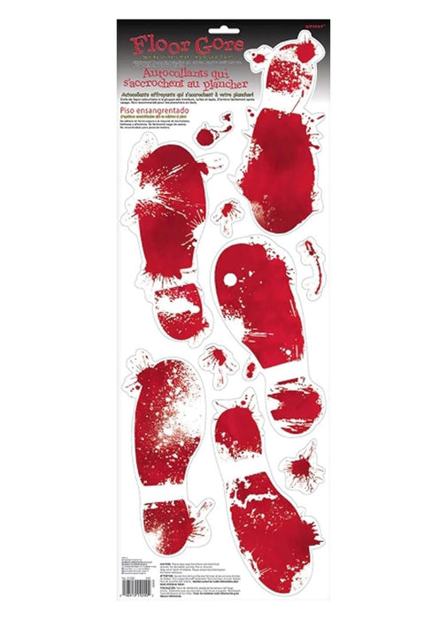 Pack of red skeleton bloody footprints and blood splash stickers for your floor. The ideal decoration for your house at Halloween!