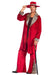 1970's style pimp daddy costume with red velvet effect jacket and trousers with animal print and matching hat along with 3 piece cane.
