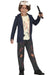 Halloween horror killer costume with face mask, dark blue jacket, bloody t-shirt and trousers.