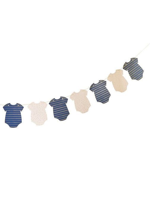 Gender reveal gold foiled pink and navy baby grow bunting with 2.5 metres of gold twine.