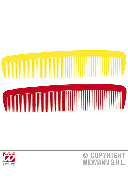 Giant plastic comb available in red & yellow colours. Ideal to use as a clown accessory.