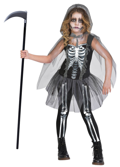 Black and white skeleton print tutu layered dress with separate leggings along with a netted cape.