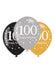 Pack of 6 100th birthday Gold Celebration 11" balloons in 3 assorted colours. Printed all over. Supplied deflated and suitable for air or helium inflation.