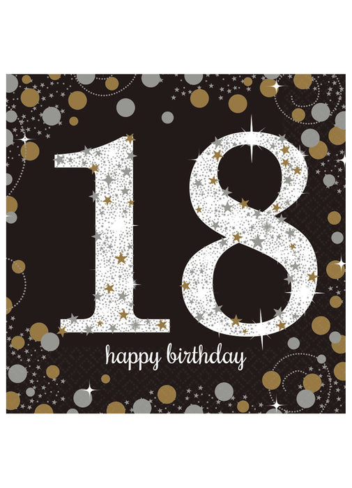 Click to expand Tap to zoom Gold Celebration 18th Birthday Napkins Save £-2.49 £2.49 SKU A9900556 1 2 3 4 5 6 7 8 9 10+ Quantity Quantity ADD TO BASKET Pack of 16 2 ply sparkling gold and black celebration age 18 lunch napkins.