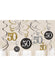 Pack of 6 age 50 foil swirl decorations with different size cutouts in gold, black and silver.