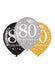 Pack of 6 80th birthday Gold Celebration 11" balloons in 3 assorted colours. Printed all over. Supplied deflated and suitable for air or helium inflation.