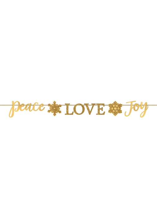 Click to expand Tap to zoom Peace Love Joy Glitter Banner Save £-2.99 £2.99 SKU A120410 1 2 3 4 5 6 7 8 9 10+ Quantity Quantity ADD TO BASKET One piece festive gold glitter banner measuring 12 ft (3.65 metres).