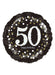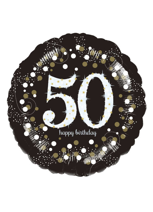 Gold Sparkle 50th birthday holographic foil balloon decorated with spots.