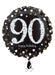 Gold Sparkle 90th birthday holographic foil balloon decorated with spots.