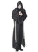 Black adult Grim Reaper costume with hooded robe and white rope belt.