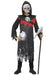 Grim Reaper costume with long black printed graveyard design robe with hood and EVA skull chest piece along with skull face mask.