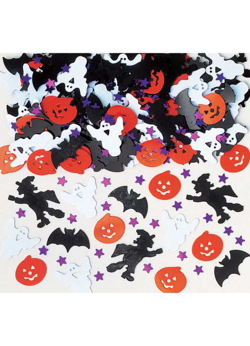 14g pack of Halloween pumpkins, bats, witches, ghosts and moon confetti.