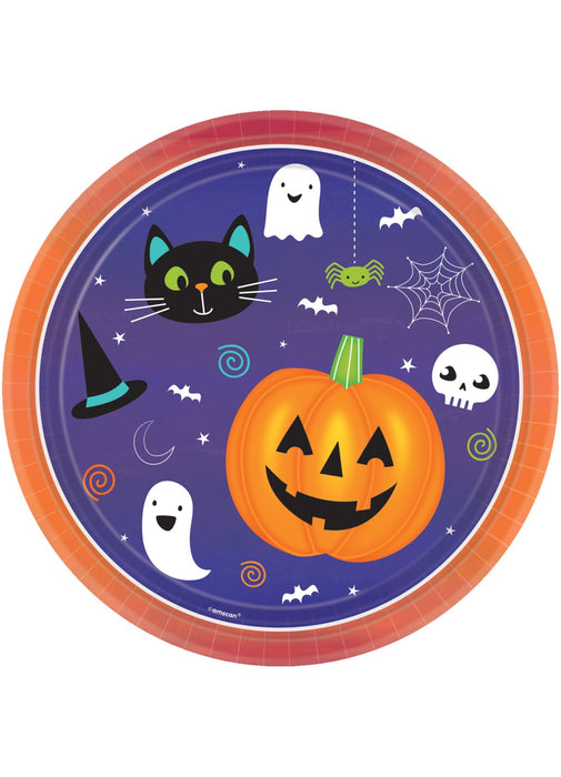 Pack of 8 Halloween themed party plates measuring 23 cm in diameter.