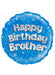 Blue Happy Birthday Brother holographic standard round foil balloon measuring 18" (45.7 cm) when inflated. Made in UK.