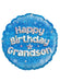 Blue Happy Birthday Grandson holographic standard round foil balloon measuring 18" (45.7 cm) when inflated. Made in UK.