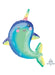 Large colourful happy Narwhal shaped foil balloon measuring 73 cm x 99 cm.