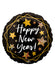 Happy New Year black and gold round foil balloon measuring 17" when inflated.