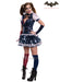 Official Harley Quinn fancy dress costume as seen in Batman. Costume consists of dress with attached lace frills, white collar and cuffs & metal hoops. Also included are the matching leggings & a pair of frilled gauntlets.