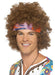 Complete your 60's look with the brown hippy afro wig with tie dye headscarf and peace medallion.