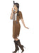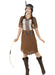 Native American inspired Indian warrior princess costume consisting of suede effect brown dress with printed detail and tassel trim. Also included is the matching headband with feather.