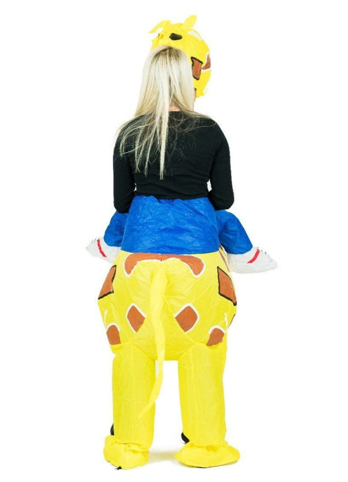 Inflatable giraffe fancy dress costume - ideal for a jungle or safari theme - consisting of full body zip up jumpsuit with hat & built in fan.