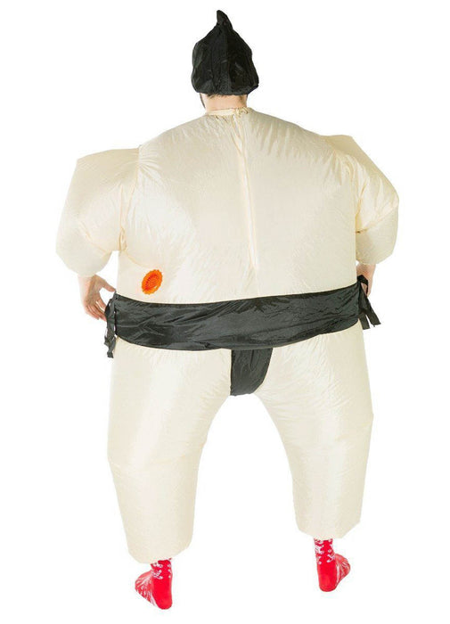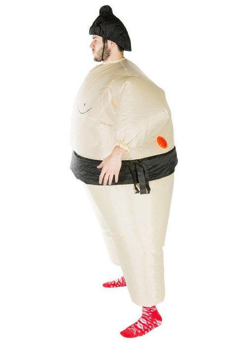 Inflatable Japanese Sumo wrestler fancy dress costume consisting of full body zip up jumpsuit with headpiece & built in fan. Costume comes in one standard size.