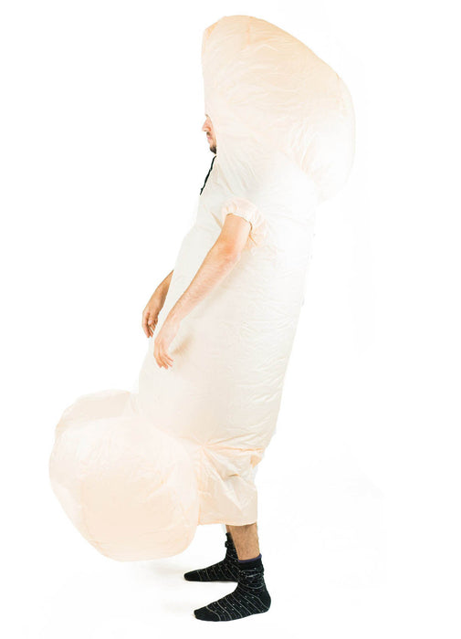 Inflatable Willy fancy dress costume consisting of full body zip up jumpsuit with face slot & built in fan. Perfect for a party, stag do or festival.