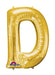 Letter D gold super shape foil balloon measuring 33" in height.