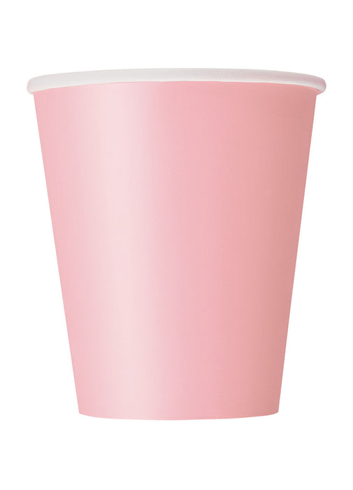 Pack of 14 pastel pink party paper cups. 270ml capacity.