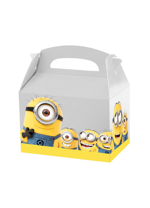 Pack of 4 Minions card party boxes decorated with character design. Ideal for storing party food or favours!