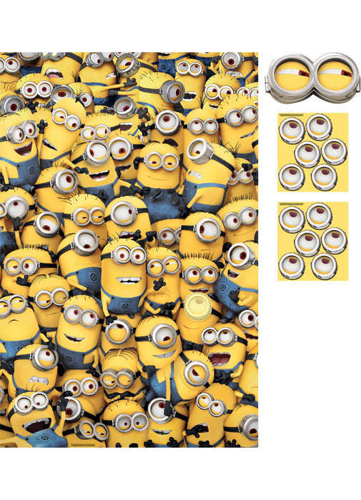 Minion themed party game consisting of 1 poster, 1 sticker sheet & 1 minion blindfold.