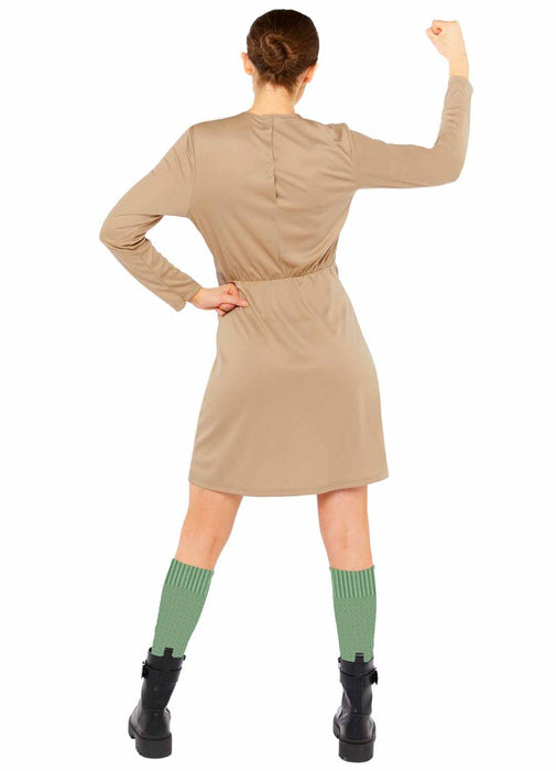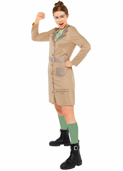 Roald Dahl licensed Miss Trunchball costume from the book Matilda with dress, socks, eyebrows and bookmark.