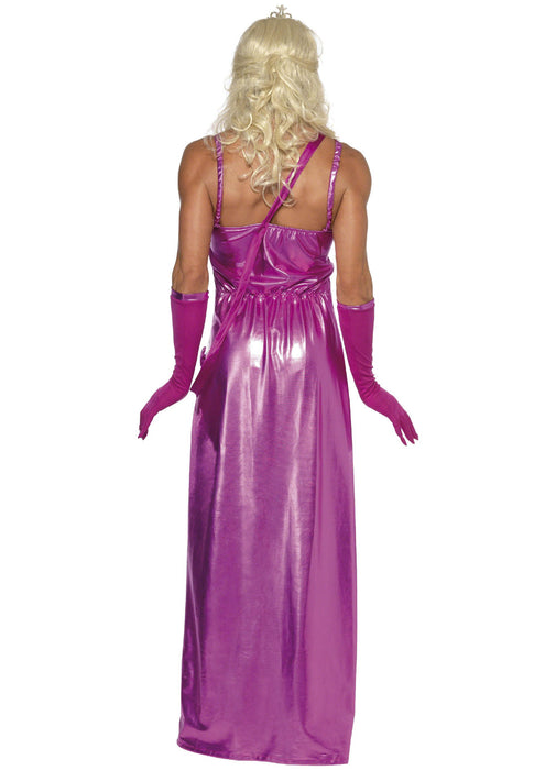 Dress to impress in this Mr Miss World drag queen costume. The costume includes a long metallic pink dress with large split and foam boobs. Also included is the Mr Miss World sash and a pair of elbow length gloves.