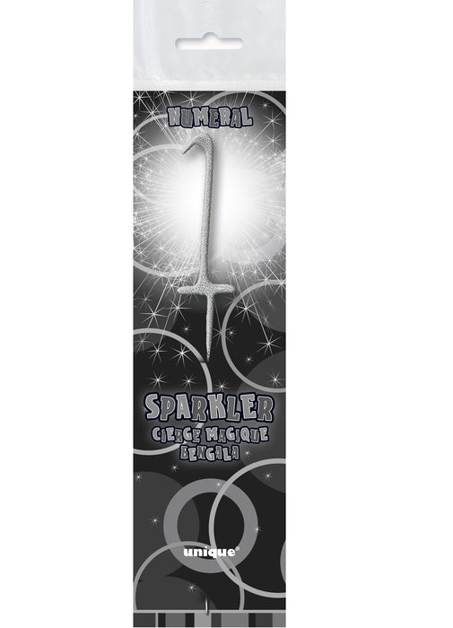 Number 1 silver sparkler candle. Ideal decoration for your birthday cake.
