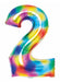 Giant number 2 rainbow splash super shape foil balloon measuring approx. 86 cm (34") in height.