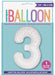 Giant number 3 white balloon with rose gold glitz sparkle super shape foil balloon measuring 34" in height.
