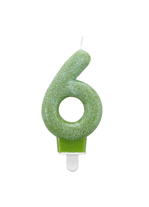 Number 6 Green Glitter Candle