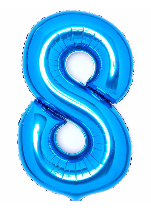 Giant number 8 blue super shape foil balloon measuring approx. 86 cm (34") in height.