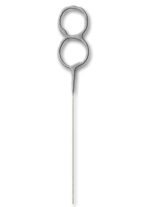 Number 8 silver sparkler candle. Ideal decoration for your birthday cake.