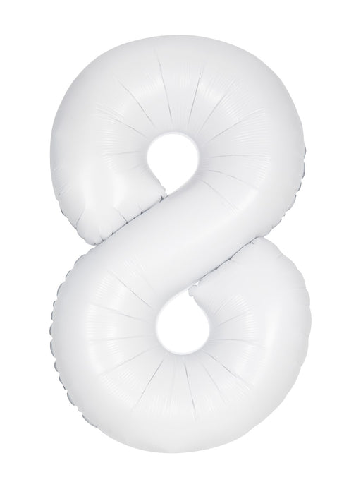 Giant number 8 white super shape foil balloon measuring 34" in height.
