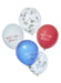 Latex balloon bundle consisting of a mixed pack of 3 red, navy and white "part like royalty" 12 inch latex balloons and 2 gold crown confetti filled 12 inch balloons.