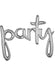 Air filled phrase balloon kit with the word "party" in silver measuring 39 in x 31 in (99 cm x 78 cm) along with straw and ribbon.