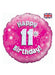Pink age 11 holographic standard round foil balloon measuring 18" (45.7 cm) when inflated. Made in UK.