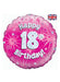 Pink age 18 holographic standard round foil balloon measuring 18" (45.7 cm) when inflated. Made in UK.