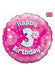 Pink age 3 holographic standard round foil balloon measuring 18" (45.7 cm) when inflated. Made in UK.