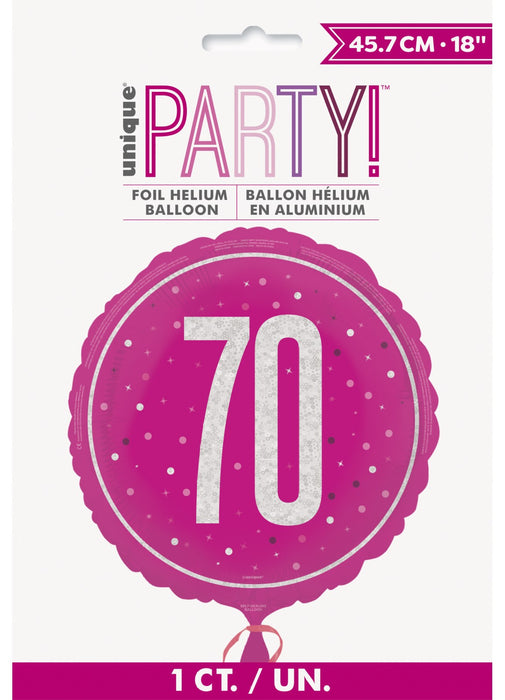 Pink Glitz 70th Birthday 18" circle shaped helium balloon printed both sides.