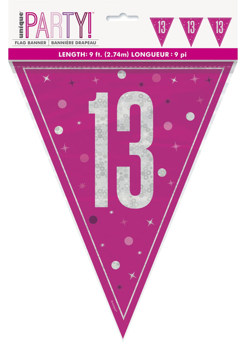 Click to expand Tap to zoom Pink Glitz Age 13 Flag Banner Save £-1.99 £1.99 SKU U82004 1 2 3 4 5 6 7 8 9 10+ Quantity Quantity ADD TO BASKET 2.74 m/9 ft long Pink Glitz 13th birthday plastic bunting.