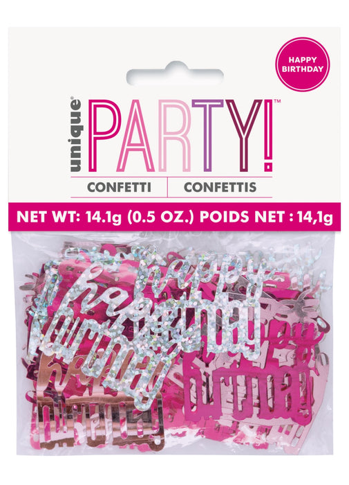 Click to expand Tap to zoom Pink Glitz Happy Birthday Confetti Save £-1.25 £1.25 SKU U80580 1 2 3 4 5 6 7 8 9 10+ Quantity Quantity ADD TO BASKET 14.1g (0.5oz) pack of pink glitz happy birthday party confetti.