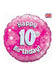 Pink age 10 holographic standard round foil balloon measuring 18" (45.7 cm) when inflated. Made in UK.